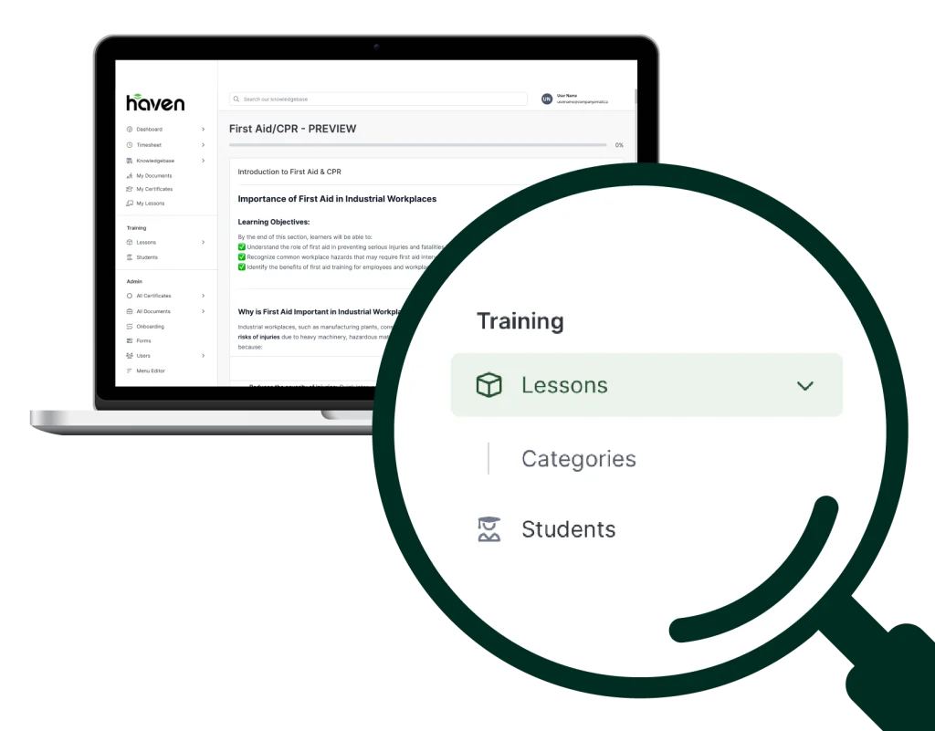 Haven takes the complexity out of training new employees and upskilling existing teams. From role-based access to performance tracking, it’s your complete solution for delivering impactful employee training.