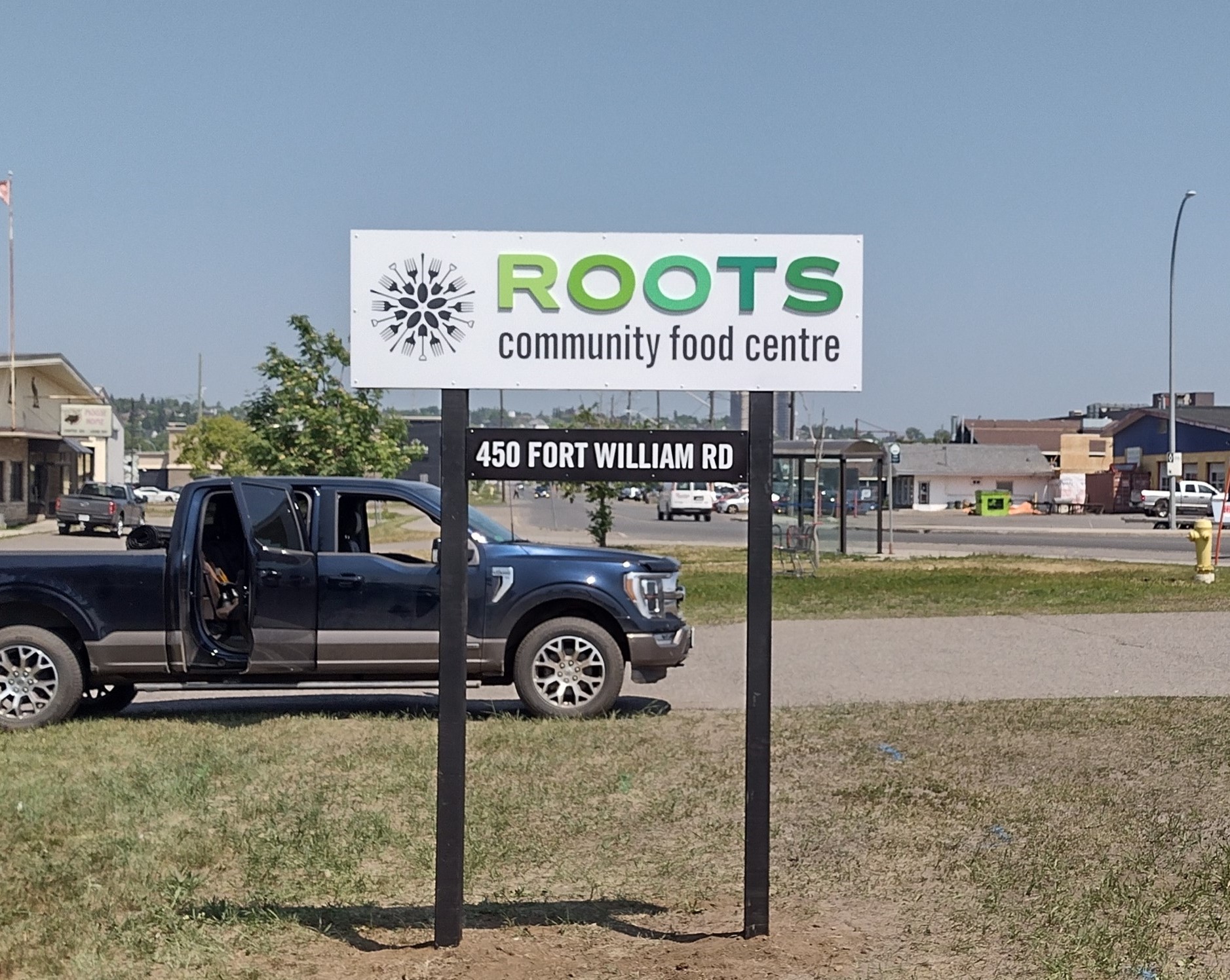 Dibond with return and custom in-ground dibond sign with dimensional lettering and dibond address bar