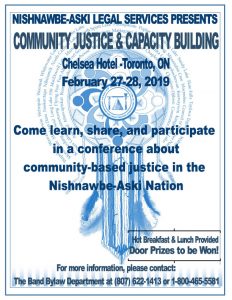 Band Bylaw Conference “Community Justice & Capacity Building” to be held at the Chelsea Hotel in Toronto, ON February 27-28, 2019.