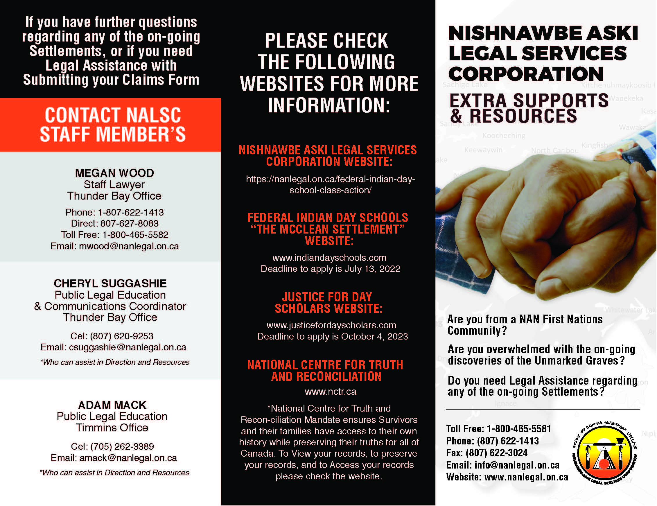 The Indian Day School Settlement Claim’s deadline is July 13th 2022. There is updated information regarding an Extension. For more, complete and accurate information, including contact information at NALSC Office please click the links below: