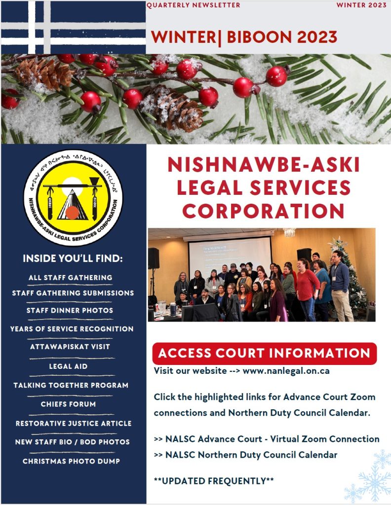 Below you will find NALSC Special Edition Christmas Newsletter 2023.  Inside you will find All Staff Gathering, Staff Dinner Photos, Years of Recognition, Legal Aid, Talking Together Program, Restorative Justice submissions and Christmas Photo Dump. Please click the link below to read: