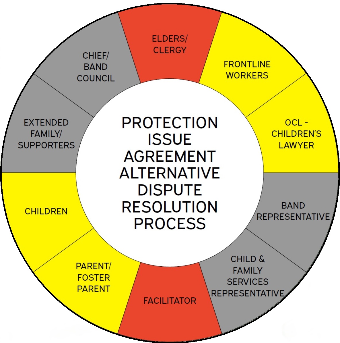 (2) If the issue referred to in subsection (1) relates to a First Nation, Inuit or Metis child, the society shall consult with a representative chosen by each of the child’s band and First Nation, Inuit or Metis communities to determine whether an alternative dispute resolution process established by that bands and communities or another prescribed alternative dispute resolution process could assist in resolving the issue.